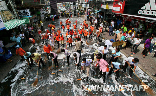 6月15日,工作人員在泰國帕塔亞清潔一條街道,以防范甲型H1N1流感疫情。截至北京時間6月15日14時,世界衛(wèi)生組織共確認泰國甲型H1N1流感確診病例8例。新華社/法新