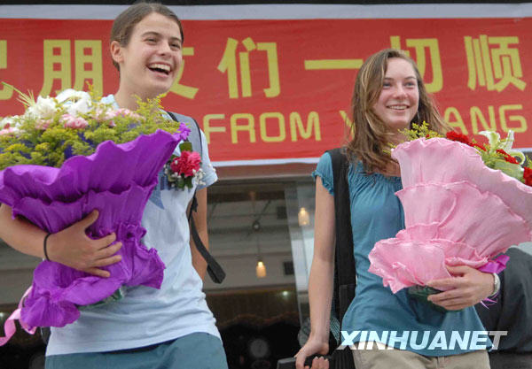 6月18日,在湖北宜昌,甲型H1N1流感確診患者密切接觸者解除集中隔離醫(yī)學(xué)觀察。來(lái)自美國(guó)的某中學(xué)生旅游團(tuán)在宜昌市期間,有數(shù)名團(tuán)員因出現(xiàn)流感樣癥狀被收治入院,其余團(tuán)員于6月11日在該市開(kāi)始集中隔離接受醫(yī)學(xué)觀察。6月18日下午,曾與甲型H1N1流感確診患者有過(guò)密切接觸,在宜昌接受集中醫(yī)學(xué)觀察的82名人員,全部順利完成隔離醫(yī)學(xué)觀察,結(jié)束隔離。新華社發(fā)(王永勝 攝)