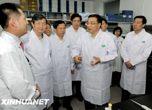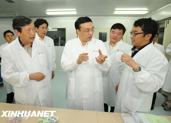 5月29日,中共中央政治局常委、國務院副總理李克強到中國醫(yī)學科學院和北京科興生物制品有限公司考察甲型H1N1流感防控工作,對聯(lián)防聯(lián)控工作作進一步部署。這是李克強考察北京科興生物制品有限公司,了解疫苗和藥品研制生產情況。新華社記者 馬占成 攝