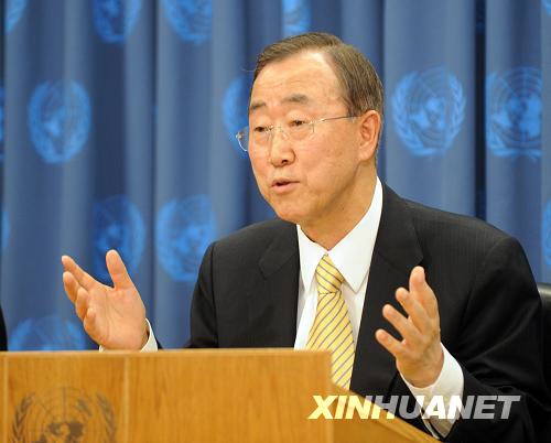 6月11日,聯(lián)合國秘書長潘基文在美國紐約聯(lián)合國總部舉行的每月例行記者招待會上講話。當(dāng)日,潘基文在記者會上說,全世界對甲型H1N1流感病毒的傳播必須保持警惕,密切關(guān)注流感病毒對發(fā)展中國家的影響,展示全球在這一問題上的團(tuán)結(jié)。新華社記者申宏攝