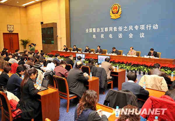 1月5日,國務院新聞辦等七部委召開電視電話會議,部署在全國開展整治互聯(lián)網(wǎng)低俗之風專項行動。新華社記者劉建生攝