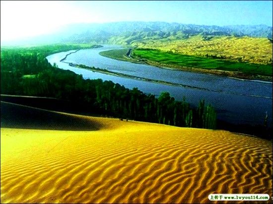 寧夏中衛(wèi)沙坡頭國(guó)家首批AAAAA景區(qū),位于騰格里沙漠腹地,是一處富有濃郁西部特色的著名沙漠旅游區(qū)。高山、黃河、沙漠、長(zhǎng)城和綠洲在此匯聚一地,形成了獨(dú)特的自然地理人文景觀。奔流的黃河,無際的沙漠,神奇的沙漠草原,蒼涼的明代長(zhǎng)城,造型雄秀的古水車,吸引了眾多游客。在此可騎駱駝遨游沙海,乘坐古老羊皮筏子漂流黃河,咫尺之間領(lǐng)略大漠孤煙,長(zhǎng)河落日的奇異景觀。