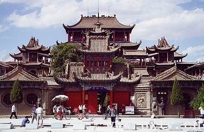 位于中衛(wèi)縣城北,始建于明永樂年間(1403-1424年),經(jīng)歷代增建重修,至清代時(shí)已成為一處規(guī)模較大的古建筑群!「邚R是一座三教合一的寺廟。供奉的不僅有佛、菩薩,還有玉皇、圣母、文昌、關(guān)公等塑像,廟內(nèi)佛、道、儒三教濟(jì)濟(jì)一堂。廟前有保安寺,山門朝南,兩側(cè)建有廂房,正面為單檐歇山頂?shù)拇笮蹖毜。殿后為高廟,有24級(jí)臺(tái)階,拾級(jí)而上,經(jīng)牌坊、南天門、中樓,最后是高達(dá)三層的五岳、玉皇、圣母殿。這些主要建筑,都在同一條中軸線上,它們層層相連,呈逐步增高之勢(shì)。在高廟主體建筑的兩側(cè),還有鐘樓、鼓樓、文樓、武樓、靈官殿,地藏殿等配殿,結(jié)構(gòu)緊密,氣勢(shì)雄偉。