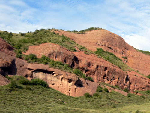 火石寨“丹霞地貌”位于西吉縣西北部的火石寨鄉(xiāng)內(nèi),南北長(zhǎng)17千米,東西寬10千米,現(xiàn)已被自治區(qū)批準(zhǔn)為“丹霞地貌”自然保護(hù)區(qū)。保護(hù)區(qū)距西吉縣城10千米,有紅色、紫紅色的山崖、山峰、山脊、怪石突兀于黃土高原之上,地貌景觀壯觀奇美。也因紅色砂巖裸露,當(dāng)?shù)厝税堰@里叫火石寨!暗は嫉孛病痹醋杂诨洷比驶硟(nèi)的丹霞山,是一種由巨厚的紅色砂巖、礫巖等紅巖組成,經(jīng)地殼抬升運(yùn)動(dòng)和流水的侵蝕、溶蝕以及風(fēng)化剝落、崩塌后退等外力作用所形成的丹崖峭壁、石峰林立等特殊地貌。丹霞地貌在我國(guó)的風(fēng)景地貌和山水景觀中,獨(dú)具一格,是我國(guó)風(fēng)景名勝區(qū)的重要類型之一。從北魏開始鑿造,盛于隋唐,數(shù)處石窟均鑿建在百余米高的石崖絕壁上。置身其間,心清神爽,飄飄欲仙。民國(guó)《西吉縣志》在介紹云臺(tái)山時(shí)說, “山高峰峻,深洞危橋,重巒疊翠,曲而幽深”,“每遇山雨欲來,必先油然作云。即晴亦多煙嵐。啼鳥鐘聲,隱約其中,花香撲鼻,足堪娛目”。這里有掃竹嶺,石寺山,禪佛寺三處石窟,各有特色,他們都是自然造化與人類智慧的有機(jī)結(jié)合。