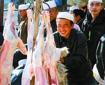 宰牲節(jié),亦稱“古爾邦節(jié)”、“犧牲節(jié)”、“忠孝節(jié)”,“古爾邦”是阿拉伯語,原意是獻(xiàn)牲。時間為伊斯蘭教歷的12月10日,這天上午10點左右,回民個個頭戴小白帽,衣冠整齊,興致勃勃擁進(jìn)清真寺進(jìn)行會禮叩拜。會禮結(jié)束后,在條件好的地方,每人要宰一只羊,七人合宰一頭;蛞环羼橊劇K字庖秩,一份自己食,一份送親友鄰居和招待來客之用,一份濟貧施舍。典禮完畢后,眾人開始訪親問友,饋贈油香,花稞稞等互相慶賀。