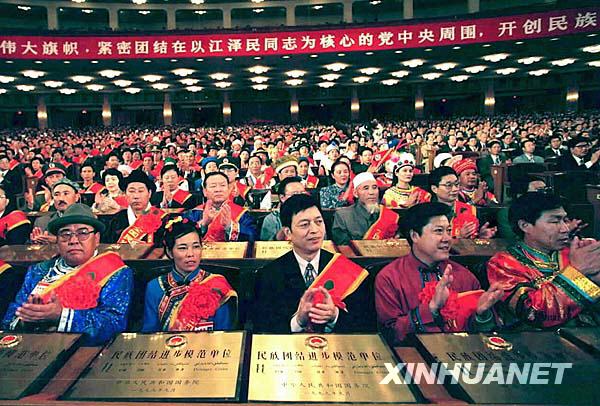 1999年9月29日,中央民族工作會議開幕式暨國務院第三次全國民族團結(jié)進步表彰大會在北京人民大會堂舉行。1254個民族團結(jié)進步模范集體和個人受到表彰(資料照片)。