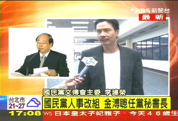 國民黨人事改組,前臺(tái)北市副市長金溥聰任秘書長。來源:臺(tái)灣TVBS電視臺(tái)