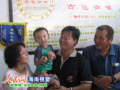 在談到自己的妻兒時,林文定的話語中透出一絲辛酸,“妻子2002年就跟我一起來到海南,我們就在咖啡地的簡易臨時木屋里吃飯、睡覺、工作,妻子和我受了很多苦!彼牡诙䝼兒子也在海南出生,幾年來也一直跟在他們身邊!昂⒆酉胍蠈W(xué)也很麻煩,最近的學(xué)校也要3公里遠,他長這么大也沒有玩伴,都是自己孤零零的! 林文定表示,雖然一起受了這么多苦,但妻子從來沒有一句怨言,一直默默的支持著他。他說:“古色咖啡的廣告語是來自臺灣,生根海南。生根海南既是咖啡生根發(fā)芽,也是我們家在這里生根,我的小兒子就在這里出生長大。”7年在海南的生活讓林文定對這片土地產(chǎn)生了深深的感情,他又創(chuàng)建了自己的品牌“強那(英文china的譯音)咖啡”,信心滿滿的林文定還說:“我要讓我的強那咖啡走向全亞洲,全世界,讓西方人也能喝到我們海南出產(chǎn)的咖啡。”(實習(xí)生付超攝影) |