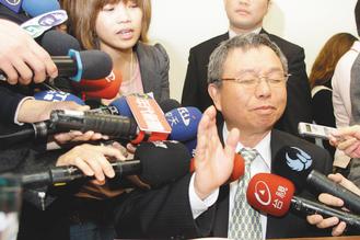 “衛(wèi)生署長”楊志良(右)昨在立院專案報告瘋牛病事宜,卻遭媒體團團包圍追問二代健保,楊志良揮揮手,絕口不提新版本內容。