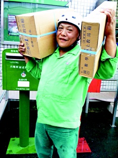 高雄縣六龜郵局郵差洪英俊天天扛著10多公斤郵件送往災(zāi)區(qū),一趟山路就要走4個多小時。圖片來源:臺灣《聯(lián)合報》
