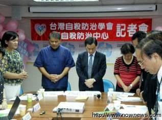臺(tái)灣自殺防治學(xué)會(huì)8月31日召開記者會(huì),呼吁“莫拉克”風(fēng)災(zāi)災(zāi)后心靈重建的重要性。開會(huì)前,大家起立為“莫拉克”風(fēng)災(zāi)罹難者默哀。圖片來源:臺(tái)灣“今日新聞”