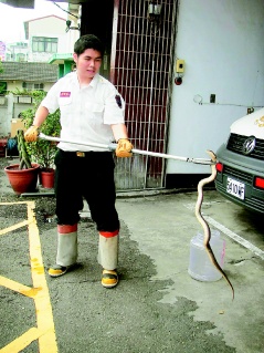 消防分隊(duì)長李昹熹表示,“莫拉克”臺(tái)風(fēng)過后,幾乎天天都有人請(qǐng)求派員抓蛇,以眼鏡蛇居多,其次為臭青母和南蛇,他提醒民眾應(yīng)小心蛇蹤。
