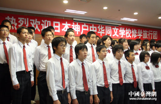 8月25日晚,日本神戶中華同文學校修學旅行團通過全國臺聯(lián)向臺灣南部災區(qū)捐款約5萬元人民幣。捐款結束后,同學們合唱《我和你》與《朋友》兩首歌曲,表達對臺灣災區(qū)受災同胞的祝福。(中國臺灣網(wǎng) 鐘寶華 攝) |