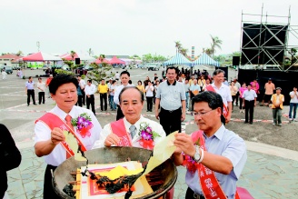 臺(tái)“立法院長”王金平(中)率宜蘭縣長呂國華(右)、臺(tái)東縣副縣長彭德成(后右一)及花蓮縣“立委”傅昆萁(左)和縣議會(huì)議長楊文值(后中)等人,在花蓮不分族群和宗教舉行聯(lián)合祈福祭天法會(huì)。(圖片來源:臺(tái)灣《聯(lián)合報(bào)》)