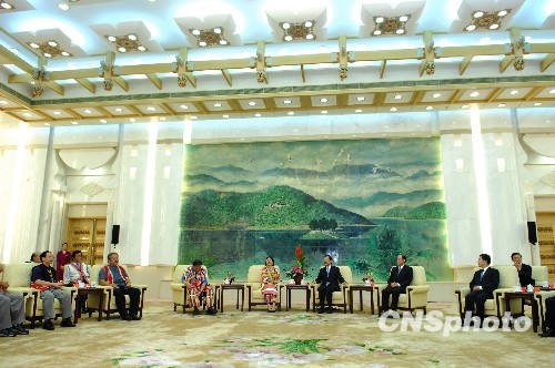 8月19日下午,中共中央臺灣事務辦公室主任王毅在北京人民大會堂臺灣廳會見了臺灣少數(shù)民族代表高金素梅等一行,王毅對臺灣遭受臺風“莫拉克”襲擊表示了深切的慰問。 中新社發(fā) 侯宇 攝