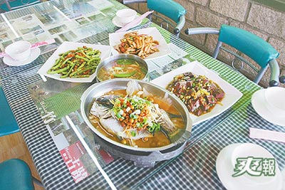 南投民宿推出“倒扁餐”,如油炸阿扁的“干扁四季豆”、象征人民滴血的“豬血悶酸菜”。(圖片來源:中新社)