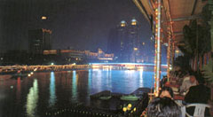 愛河從民族路經(jīng)中華路、建國橋、七賢橋、中正大橋至高雄大橋,近7公里的河岸都已完成公園綠化。高大的鳳凰木、嫣紅奼紫的九重葛、馬纓丹等花木點(diǎn)綴綠地之上,綠黝黝襯著蕩漾的河水,兩旁幢幢高樓倒影,氣氛相當(dāng)幽靜。沿著河岸漫步,有涼亭、涼椅可供休息。