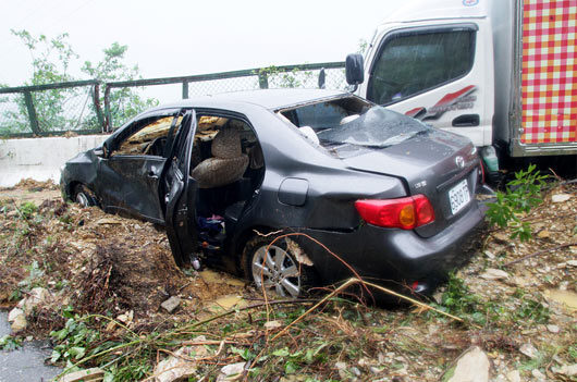 臺(tái)風(fēng)“鲇魚”所帶來(lái)的強(qiáng)風(fēng)豪雨致蘇花公路嚴(yán)重塌方,不少車輛遭崩落的土石砸毀 圖片來(lái)源:臺(tái)灣《聯(lián)合報(bào)》