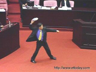 中新網(wǎng)4月3日電 臺“立法院”再次上演搞笑一幕,無黨籍“立委”李敖以拋鞋子的方式向蘇貞昌質(zhì)詢,未料坐在臺下的民進黨“立委”林國慶上前護駕,不但直接將鞋“丟”到李敖身上,還趨前把李敖扯下質(zhì)詢臺。