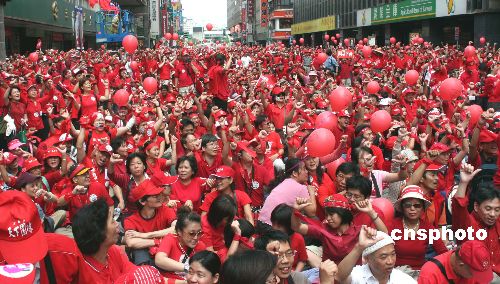 臺灣“百萬人民反貪腐”總部發(fā)起的“天下圍攻”活動,2006年10月10日上午在臺北市中心地區(qū)上演。大批民眾齊呼“倒扁”口號,表達(dá)反貪腐訴求。 中新社發(fā) 黃少華 攝