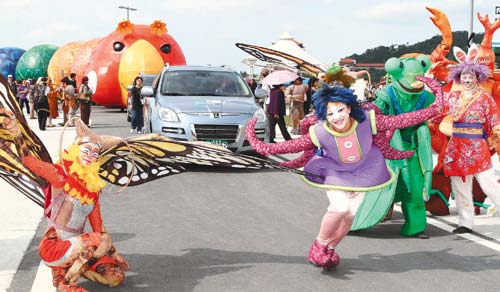 臺北花博參觀人數(shù)預(yù)估在本周結(jié)束前突破100萬人。紙風(fēng)車劇團的“毛毛蟲幸福大游行”也將加場演出,將由納智捷汽車贊助經(jīng)費,增加30場游行。昨天的游行隊伍中還加入兩部電動車,讓隊伍更為壯觀