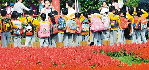 這周是臺(tái)北縣新和小學(xué)“花博校外教學(xué)周”,全校數(shù)百名師生,分批逛花博。新和小學(xué)總務(wù)主任廖燕燕昨天帶領(lǐng)小一、小二200多人來參觀,她說,夢(mèng)想館、未來館人多無緣入館,校外教學(xué)只能粗略認(rèn)識(shí),建議家長(zhǎng)可再帶孩子來一次。