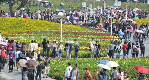 資料圖:連續(xù)多日的好天氣又適逢清明連假,臺北花博涌入大批人潮,園區(qū)內(nèi)人山“花”海、萬頭鉆動。 圖片來源:“中央社”