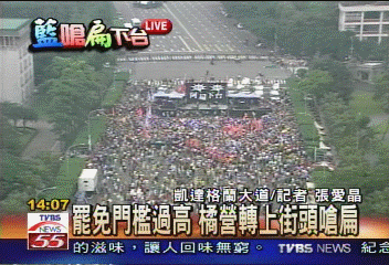中國臺灣網(wǎng)6月3日消息 據(jù)臺媒報道,親民黨所發(fā)動的“全民嗆扁,阿扁下臺”活動,目前已經(jīng)正式豋場。現(xiàn)在有相當多的民眾涌入凱達格蘭大道,親民黨主席宋楚瑜親自到場參加。