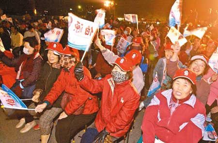 昨晚氣溫不到20攝氏度,但現(xiàn)場聚集6千多名支持群眾,搖旗高喊“凍蒜(當選)”聲不斷,氣氛炒得熱鬧滾滾。