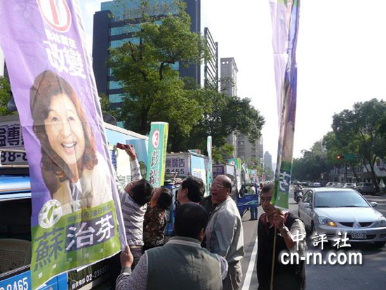 沒有參選的民進(jìn)黨臺北市議員和縣市長候選人的宣傳車出現(xiàn)在臺北市街頭,讓臺北市也增添幾許選舉味。