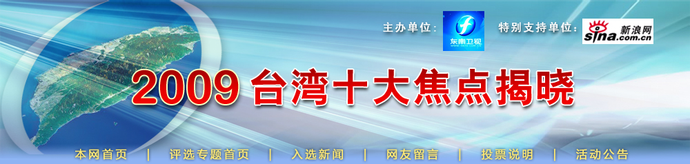中國臺灣網(wǎng)1月19日北京消息 由福建東南衛(wèi)視聯(lián)手臺灣TVBS電視臺,與廈門大學臺灣研究院、福建省社會科學院現(xiàn)代臺灣研究所、上海國際問題研究院臺港澳研究所,以及新浪網(wǎng)共同推出“2009臺灣十大焦點”評選活動網(wǎng)友獲獎名單今日公布。東南衛(wèi)視將在近期分批向獲獎者寄送精美獎品。如獲獎者有問題,請與東南衛(wèi)視季建維 0591-83315838-813取得聯(lián)系。