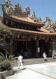 <%beginrecord%><%endrecord%> 桃園在屯墾之初因瘟疫盛行、械斗激烈,鄉(xiāng)民為避禍求福,乃倡建開漳圣王廟——景福宮,嘉慶18年(1813年)廟成,不僅成為當?shù)卣闹萑说男叛鲋行,也成了此后城區(qū)發(fā)展的中心。 景福宮位于中正路、中山路口,俗稱桃園大廟,主祀由大溪仁和宮分香供奉的開漳圣王,配祀玄壇元帥、觀音佛祖,是全島最大的漳州移民信仰中心,列為三級古跡,F(xiàn)今廟貌為1961年所修,其歇山重檐假四垂的屋頂在臺灣廟宇中極為罕見。每年中元節(jié)的普渡祭典,整個桃園市大辦流水席,此即俗稱的桃園大拜拜,是景福宮最盛大的祭典。 乘車風向標: 由桃園市復興路搭1路市公車,于景福宮下車即抵。
