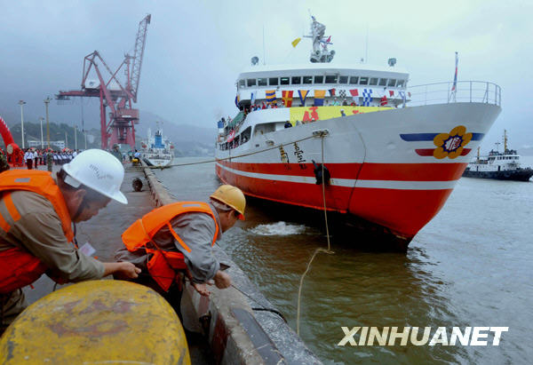 11月8日,從臺灣基隆港出發(fā)并彎靠馬祖福澳港的“臺馬”號客輪,經(jīng)過10多個小時的航程后,安全抵達福州馬尾港。這是“兩馬”海上客運航線首次延伸至臺灣本島。 新華社記者 張國俊 攝