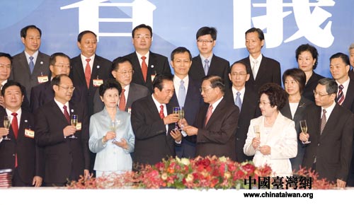 簽約后陳云林和江丙坤碰杯慶祝協議簽署成功。中國臺灣網 田云鵬攝