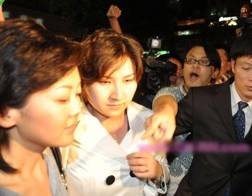 柴璐要離開(kāi),綠營(yíng)暴民卻不放過(guò)她,把她和她的助理(穿白衣者)團(tuán)團(tuán)圍住 ,警方增派人員急忙保護(hù)。