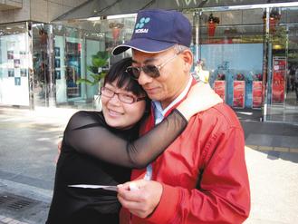 兩人開心合照,閑聊萬人擁抱的起因和經過,阿伯沒有透露姓名,離去時眼眶泛淚地說:“你和我兒女一般大,勇氣卻讓我很感動!弊8H~若羚往后一切順心。