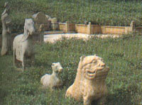 為臺灣唯一的孝子坊,葫蘆造型的夾柱石為其一大特色。李錫金14歲喪父,家境貧寒但事母至孝,長大后自立營商,家道開始興旺,曾與開臺進士鄭用錫,分赴各地勸說、消弭械斗,地方士紳感其孝行義舉,乃推薦獲準旌獎。 鄭用錫墓 鄭用錫墓筑于同治8年(1869年),現(xiàn)為二級古跡,墓園占地頗大,墓埕上有兩排石人與石獸雕刻,及一對石刻文筆望柱。石武人肅穆剛毅,石文人敦厚儒雅,服飾及佩帶物俱全,衣褶流暢自然,石馬、石羊、石虎的造型樸拙而不失細致,整體雕刻水準是全臺古墓中最高的,反映出古代的官家排場。 乘車風向標: