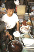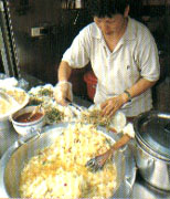 提到新竹小吃,馬上令人聯(lián)想到城隍廟。新竹城隍廟小吃在日據(jù)時代就已經(jīng)成形,當(dāng)時有“庶民味覺的殿堂”之稱,時至今日,這里仍然是新竹小吃的大本營,范圍涵蓋了城隍廟和法蓮寺前方的廣場,與廣場外圍的東門街、中山路一帶,約50家攤子搭棚架瓦,把古跡級的城隍廟團團圍住,形成一個熱鬧的商區(qū),其中不乏三代相傳的知名老攤。 除了米粉、貢丸、肉圓三大新竹傳統(tǒng)小吃齊聚于此,魯肉飯、潤餅、魷魚羹、蚵仔煎等亦別具滋味,工作賣力的攤主們從早餐賣到宵夜,24小時來這里都可以尋得美味,是新竹人吃三餐飽肚、游客品嘗新竹美味的必到之地。 廟口林家肉圓 電話:(03)522-9008 營業(yè)時間:9點-24點 休息時間:每月最后一個周二 店內(nèi)特色:香菇肉貢丸、蔥肉肉圓、栗子肉圓、四神湯 正對城隍廟戲臺的林家肉圓,為祖?zhèn)魅睦系,以紅糟肉、蔥為餡料,裹上蕃薯粉、糯米合制的外皮,口味特殊,為新竹肉圓的正宗吃法。此外,用香菇、絞肉加蠔油、香料炒香后,再包進肉漿制成的香菇肉貢丸,也是林家獨步的美食。而用小腸和薏米以文火煨透的四神湯,吃起來滑嫩不膩,灑上龍鳳酒,味道更加香醇,是搭配肉圓的上選湯品。 林家甜品 電話:(03)523-0343 營業(yè)時間:09點半-21點半 休息時間:每月最后一個周二 店內(nèi)特色:綜合冰、紅豆牛奶冰  這是城隍廟唯一賣冰品甜點的攤子,紅豆綠豆、蓮子桂圓、花生麥角等古味十足的傳統(tǒng)配料,是讓小攤屹立60多年的重要功臣。不同于一般煮得糊爛的冰點配料,林家阿伯把綠豆、麥角煮得恰好熟透、顆粒分明,吃起來口感香綿。因為客源穩(wěn)定,冷熱甜品都有,所以即便冬天前來,也不怕吃不到林家阿伯的“甜頭”。 王記蚵仔煎 電話:(03)521-5625 營業(yè)時間:09點半-21點 休息時間:每月最后一個周二 店內(nèi)特色:蚵仔煎、肉燕湯、魚粳湯 采用每天清晨自嘉義東石運來的蚵仔,是王記蚵鮮味美的秘訣,而蚵仔煎要好吃,最重要的就是地瓜粉勾芡的功夫,粉水比例恰當(dāng),煎起來才會軟中帶Q,表皮香脆;另外,王記的肉燕也很特別,尤其是燕皮的制作費工,別處很難吃到;而湯鮮味美的魚粳湯,亦是吃蚵仔煎的絕妙搭配。  元祖潤餅 電話:(03)522-2285 營業(yè)時間:10點-21點半 休息時間:每月最后一個周二 店內(nèi)特色:潤餅 創(chuàng)店80多年、傳承五代的郭家潤餅,是新竹地區(qū)的潤餅老店,因知名度頗高,故攤前常見大排長龍的盛況。其與眾不同之處,在于用梨山高麗菜、紅蘿卜、白蘿卜炒香后,鹵制成口味獨特的鹵菜,加上蛋酥、菜脯、沙豆干、香菜、花生粉、豆芽等多種配料,再用香Q帶勁的自制餅皮包起來卷上,既快速又好吃,無怪乎甚受大眾喜愛。