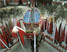 <%beginrecord%><%endrecord%> 二龍村為礁溪鄉(xiāng)東緣的一個小村,源自五峰旗瀑布的二龍河(得子口溪)流經(jīng)此地,昔日噶瑪蘭人居住于此,每戶人家后院直通河道,數(shù)度發(fā)生孩童落水溺斃的事件,于是噶瑪蘭人以劃船競渡的方式驅(qū)逐水中精怪。后來漢人移入混居,將此習俗與端午節(jié)結合,延續(xù)至今,已有近兩百年歷史。 二龍村的龍舟賽由上游的淇武蘭與下游的洲子尾兩莊相互競技,兩莊各有專用龍船,平時置于“龍船厝”內(nèi)細心維護,端午節(jié)上午由年高德勛者帶領,以古禮祭拜點睛、祭拜河神,才開始正式競賽。 競賽方式與一般的龍舟賽不同,不設發(fā)令員、計時員與裁判,兩村選手在起點前約40公尺處立下木椿作為起點標,在大家同聲吆喝下以站立姿勢劃動船身至木椿處,若雙方覺得旗鼓相當時便敲鑼示意,表示這次競賽算數(shù),但若有一方認為對方搶劃,或沒有信心贏得勝利,就不敲鑼表示不算,要折回起點重新再來。因雙方認定不同,故常常進行了1個小時卻連一趟都沒有劃完。若雙方都敲鑼示意,則雙方搶奪置于終點處象征村泰民安、五谷豐登的平安旗,先拿下的一方即獲得勝利,但由于未設裁判,奪旗的先后也常有爭議,以至曾一度中斷,后終因世交之篤與歷史傳承,兩莊復又重掌船槳,熱鬧開鑼。