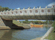 冬山河流域,曾是孕育養(yǎng)鴨人家的水園,但每雨成災(zāi),使鴨賞的美味隱藏著多少辛酸;整治后的冬山河,呈顯怡人的綠景,親水公園中洋溢的蓬勃朝氣,正是這條“希望之河”的最佳注腳。 源于新寮山的冬山河,縱貫冬山鄉(xiāng)太和村至五結(jié)鄉(xiāng)防潮閘間,綿延24公里長(zhǎng),是宜蘭縣第五大河,在興蘭陽(yáng)溪匯流后注入太平洋。冬山河兩岸早期為噶瑪蘭人居住地,噶瑪蘭人諳水性,生活與冬山河息息相關(guān),后來(lái)漢人入住,原有聚落逐漸遷移或漢化,改變了冬山河一帶的風(fēng)貌,如今只有在流流社或加禮宛社,才能約略尋訪到噶瑪蘭的足跡。 冬山河因河道彎曲,沿途又有多條支流匯入,因而每遇大雨便泛濫成災(zāi)。也正因此,冬山河流域一帶耕作不易,居民以養(yǎng)鴨為生,居民劃著鴨母船來(lái)回水面,是此區(qū)常見的情景,而為長(zhǎng)久保存而制成的鴨賞,更是最能顯現(xiàn)居民生活的食品。從1974年起,冬山河經(jīng)過3年整治,筑成一條長(zhǎng)達(dá)12公里的人工河,水位平穩(wěn)、水流緩和,不僅解決了蘭陽(yáng)平原4000公頃低洼農(nóng)田的嚴(yán)重水患,更因其四周景觀豐富、規(guī)劃良好,成為宜蘭觀光賞游勝地之一。 另外,冬山河游憩區(qū)地跨羅東、冬山、五結(jié)三鄉(xiāng)鎮(zhèn),納入主要開發(fā)計(jì)劃的是從上游冬山河橋至下游利澤橋間長(zhǎng)12公里的河道,為全臺(tái)首創(chuàng)以運(yùn)動(dòng)、游憩、休閑功能作為規(guī)劃的大范圍河濱游憩區(qū)。主河道分上、中、下三段水域,展現(xiàn)不同的游憩風(fēng)貌:上段以自然生態(tài)保育為主,中段辟為親水活動(dòng)區(qū),而下段將建設(shè)成水上公園,整個(gè)冬山河游憩區(qū)儼然就是一深具休閑教育功能的“水態(tài)博物館”。 上段冬山河橋畔建有可露營(yíng)、烤肉的河濱公園,另設(shè)有賞月臺(tái)、觀星臺(tái)可觀察天體,并可細(xì)觀小生物的活動(dòng),是一處生態(tài)豐富的自然場(chǎng)地。目前,宜蘭縣政府正著手將之規(guī)劃為冬山河森林公園。中段由宜冬橋到捷徑橋,長(zhǎng)約3.5公里的河道平直寬廣,是全程流域的精華地帶;捷徑橋附近的河濱地造了一座仿照大陸河北省趙縣安濟(jì)橋所建的仿古拱橋,古樸雅致,如臥波長(zhǎng)虹,橫跨冬山河之上。 過了捷徑橋,便是著名的親水公園,親水公園為日本象集團(tuán)所設(shè)計(jì),以重建人與水的自然倫理為主要思想,模仿大自然造景并融入很多蘭陽(yáng)本土色彩,大至造景主軸線將水上舞臺(tái)、五座圓錐形卵石丘及海面上的龜山島,在視覺設(shè)計(jì)上連成一線,讓這座宜蘭地標(biāo)引入親水公園,而小至照明用的路燈,都以漁船聚魚用的燈具為模型。此外,建筑素材多取自宜蘭河床、海邊的石材,或是手工燒制的紅磚,處處顯現(xiàn)了濃厚的宜蘭鄉(xiāng)土味。 親水公園自1992年開放以來(lái),早成為宜蘭鄉(xiāng)親的休閑去處,其完善的親水設(shè)施、清新的造景,與深富人文精神、感官之美的公共藝術(shù),更吸引不少外地游客慕名前來(lái),打響了名號(hào)。公園內(nèi)見不到呼嘯而過的汽車,倒是規(guī)劃良好的單車道,引得不少人們踏著單車游園,悠緩的步調(diào)頗為愜意,這條單車道還可延伸至冬山火車站,在1小時(shí)的漫游中欣賞恬靜的田園風(fēng)光。 由昔日的災(zāi)患頻頻,到今日的游憩勝地,東山河的整治,親水公園的辟建,讓蘭陽(yáng)人深深引以為傲,F(xiàn)今,宜蘭一年一度的端午龍舟賽都在東山河舉行,風(fēng)行國(guó)際的西式劃船競(jìng)賽,國(guó)際童玩節(jié)也多利用此為活動(dòng)場(chǎng)地,農(nóng)歷七夕還搭起鵲橋,憑添浪漫氣氛。公園附近的河岸,因東山河的生態(tài)完好,每到晨昏便有不少釣客依著河岸拋竿,還不時(shí)可見竹筏梭巡水上,而下游的水上公園,將朝休閑消費(fèi)的功能發(fā)展,提供滑水、釣魚、觀光漁獵等活動(dòng),作為全水域的水上游樂區(qū)。 涉水區(qū) 涉水區(qū)是公園里最熱鬧的地方,水深不過腳踝的設(shè)計(jì),正是讓大小朋友都能自在安心戲水的體貼,仔細(xì)觀察,不難發(fā)覺池底有著跳房子用的格狀圖形;水中錯(cuò)落著白石與小型石墻,則意味著從前冬山河流域常見的鴨群與圍籬。 童趣鑲畫 龍坡的階梯上,是一方方有趣的鑲嵌圖畫,這是800位宜蘭小朋友用貝殼、彈珠、陶片所做成的水泥貼畫杰作,鮮艷的色彩、隨興的構(gòu)圖,都使海洋世界、田園風(fēng)光等貼畫突顯樸拙童趣。 劃船區(qū) 劃船區(qū)可用來(lái)練習(xí)龍舟、輕艇,等技巧練得純熟后,再越過臥龍橋進(jìn)入冬山河河道。水面架起的木棧橋,是小憩、賞景的好據(jù)點(diǎn),而區(qū)隔劃船區(qū)與冬山河河道的臥龍橋,則是仿龍舟造型設(shè)計(jì)而成,橋身兩側(cè)飾有放置船槳的圓孔。 文武涼亭 配合黃龍、青龍一文一武的意涵,河道兩岸的涼亭也有不同的造型,象徵“文”的黃龍岸涼亭線條較圓滑,意指“武”的青龍岸則是有棱有角,剛?cè)岵?jì),頗符合中國(guó)人的中庸之道。 野外劇場(chǎng) 半圓形的階梯座席依坡層層緩降,是露天表演的最佳舞臺(tái),坐臥其上,看風(fēng)景、欣賞表演兩相宜。站在野外劇場(chǎng)的最高點(diǎn)往東望去,圓錐形的卵石丘由小漸大,排列成直線,再往遠(yuǎn)方延伸正是龜山島的頸部,構(gòu)成公園造景的主軸線