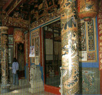 建于清康熙28年(1689年)的雙忠廟,是嘉義市(諸羅城)最早造建的漢人廟,而有“嘉義第一古廟”的封號(hào);主祀張巡、許遠(yuǎn)兩位大將軍,又稱元帥廟,是臺(tái)灣少數(shù)供奉正史歷史人物的廟宇。張、許二人乃是平定唐朝安祿山之亂的大功臣,殉國后被民間奉為專收厲鬼的“厲王”。并與建于縣署之南的城隍廟、天后宮,并稱諸羅城香火最盛的三鼎廟。 廟容雖不巍峨,卻集民間藝術(shù)精粹于一身,從廟殿構(gòu)筑、雕梁畫棟、磨石子羅金龍柱,到龍虎堵交趾燒,俱是國寶極大師的精心杰作;雖然,歷經(jīng)近300年變遷,廟內(nèi)已有不少古物失毀,但仍保有建廟時(shí)的元帥印、香座、香爐、石柱等百年古物。每年的農(nóng)歷5月8日與12月8日,是許、張二神的誕辰,熱鬧的祭典為寺廟帶來少見的人潮。 交通風(fēng)向標(biāo): 于嘉義火車站前搭往梅山、新興寮、竹崎的嘉義縣營公車,于東市場站下車,循吳鳳北路續(xù)行右轉(zhuǎn)光彩街則可抵雙忠廟。