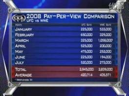 2008年1-7月UFC,WWE和HBO的PPV收入對比(摘自綜合搏擊統(tǒng)計(jì))