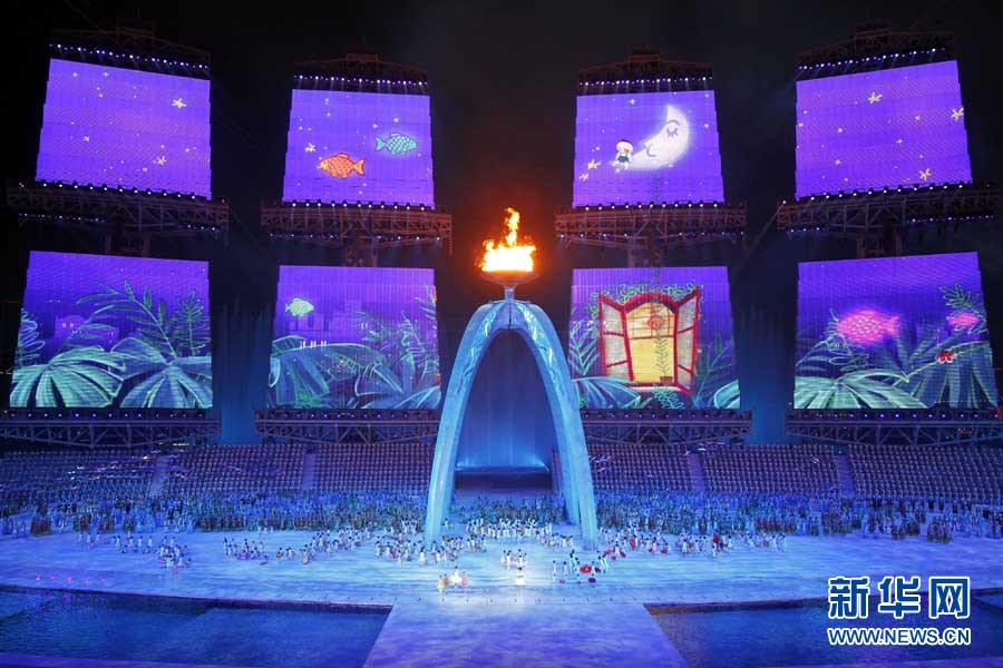 11月27日,第16屆亞運(yùn)會在廣州市海心沙島舉行閉幕式。這是文藝表演《請把你的歌留下》。 新華社記者公磊攝