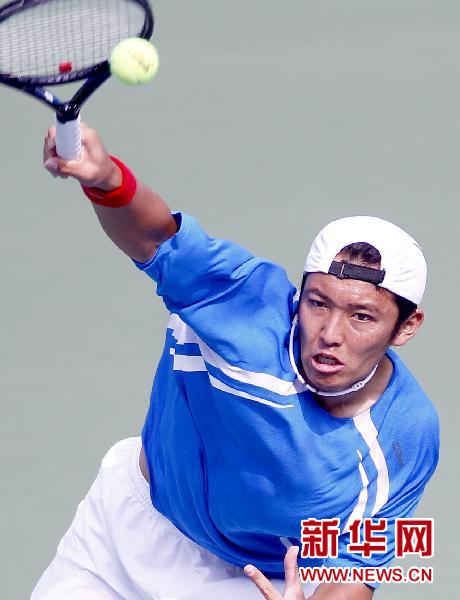 11月22日,日本選手伊藤龍馬在比賽中回球。當日,在廣州進行的第16屆亞運會網(wǎng)球男子單打半決賽中,日本選手伊藤龍馬以1比2負于印度選手索姆德夫 基肖爾 德瓦爾曼,獲得銅牌。新華社記者 陳建力 攝