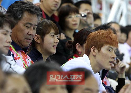 樸泰桓攜鄭達(dá)萊觀亞運(yùn)跳水賽 頭發(fā)再換顏色(圖)