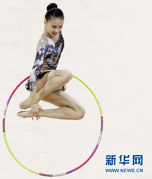 11月25日,韓國選手孫延在在藝術(shù)體操個(gè)人全能圈操的比賽中。當(dāng)日,在廣州舉行的第16屆亞運(yùn)會藝術(shù)體操比賽在亞運(yùn)城綜合館拉開戰(zhàn)幕。新華社記者陳建力攝