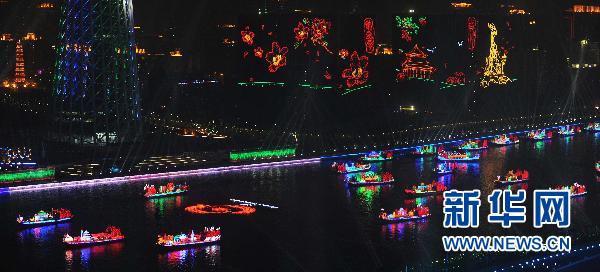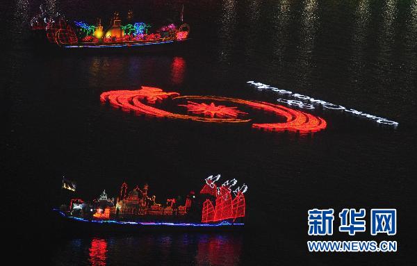 第16屆亞運會閉幕式在廣州舉行 11月27日,第16屆亞運會閉幕式在廣州舉行。這是參加閉幕式的花船在珠江上巡游。 新華社記者徐家軍攝