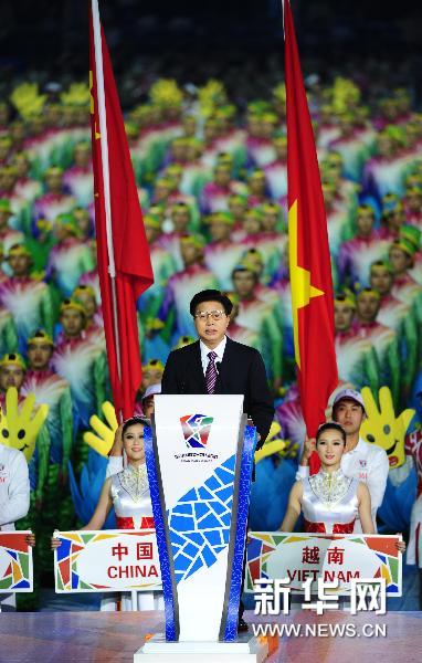 12月12日,廣州亞殘運(yùn)會組委會執(zhí)行主席、廣東省省長黃華華在開幕式上致辭。當(dāng)日,廣州2010年亞洲殘疾人運(yùn)動會開幕式在廣州廣東奧林匹克體育中心舉行。新華社記者江宏景攝