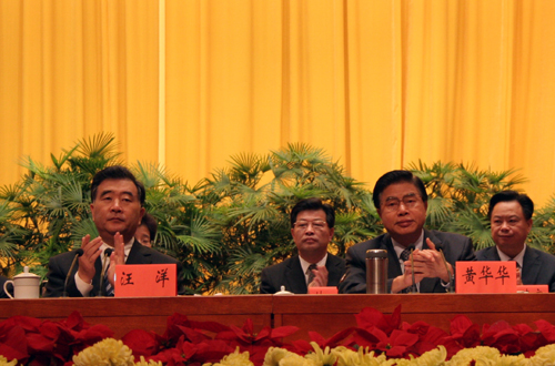 中共中央政治局委員、廣東省委書記汪洋在大會發(fā)表重要講話。廣東省省長黃華華主持大會。