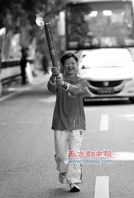 昨天的第一棒南欣是中國殘聯(lián)愛心大使和廣州亞殘運(yùn)會(huì)愛心大使,她同時(shí)是一位歌唱家。在輕松完成首棒的傳遞后,被大批電視臺(tái)記者簇?fù)碇哪闲离y掩興奮激動(dòng)地說:“之前從來沒想過能擔(dān)任首棒火炬手,剛才在火炬手投放車上等候時(shí),心情已經(jīng)很激動(dòng),但當(dāng)我的手托起火炬時(shí)突然感覺很神圣!